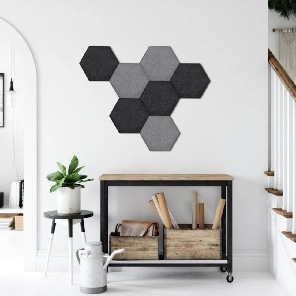 Prinesite tako moderno eleganco kot akustično udobje v vaš prostor z vsestranskimi HEXA FLAT paneli, ki so popolni za trajnostno in stilno posodobitev.